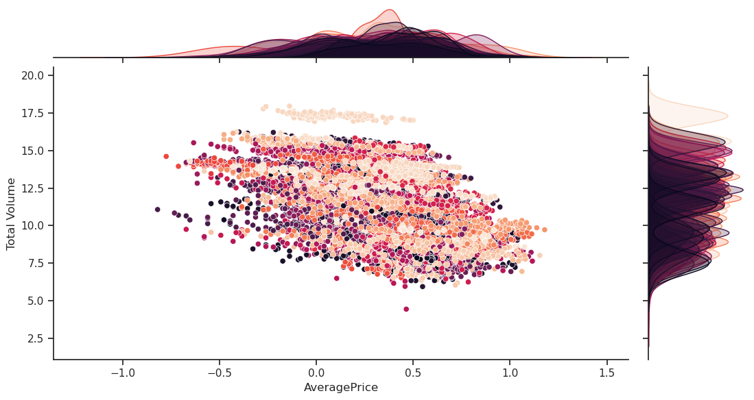 Now let’s assume a linear model where we include the region, avocado type and time.